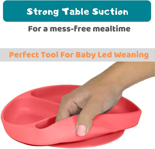 Suction Plate for Toddlers | BPA Free, 100% Food-Grade Silicone | Microwave, Dishwasher and Oven Safe | Stay Put Divided Baby Feeding Bowls and Dishes for Kids and Infants
